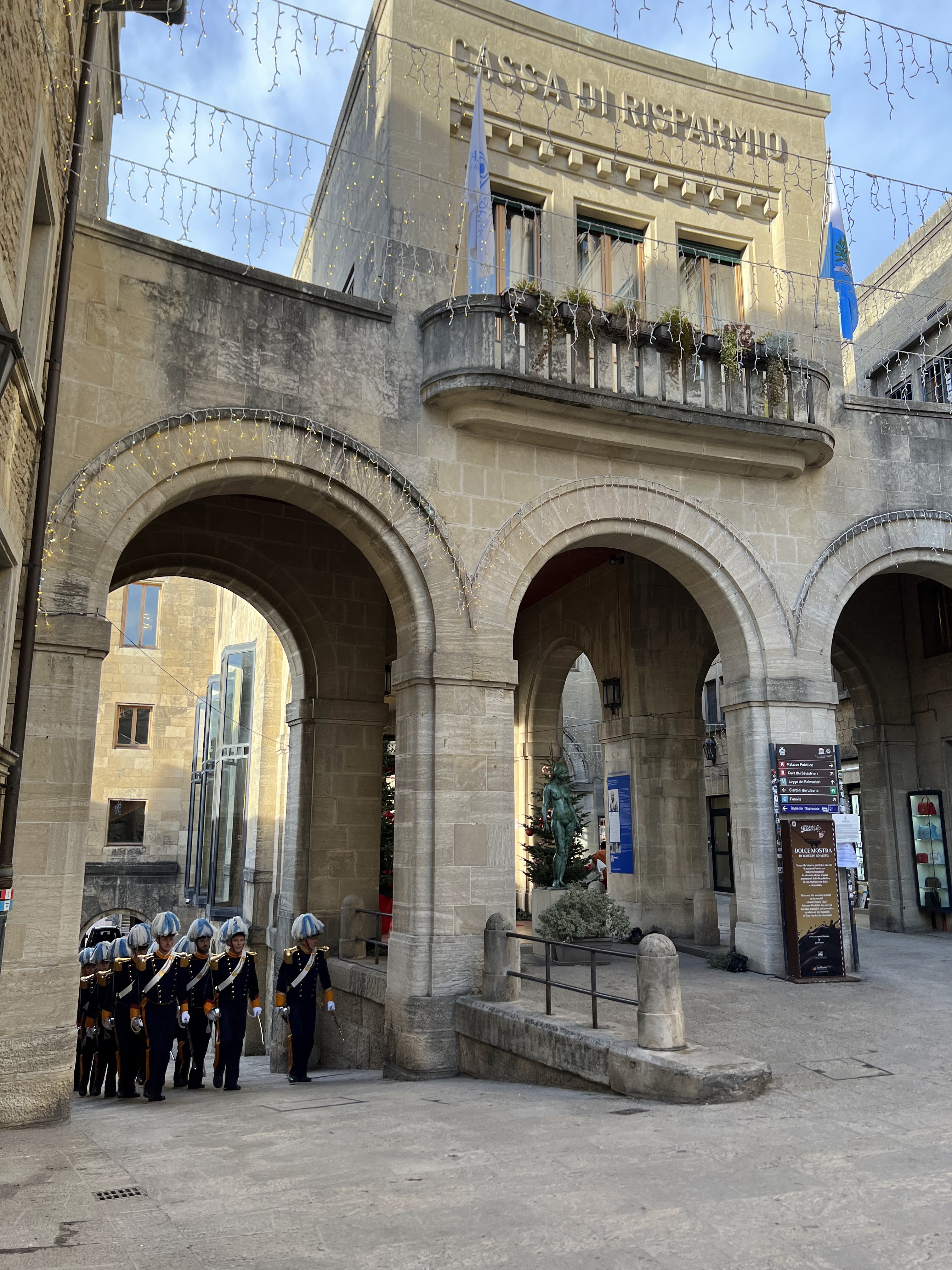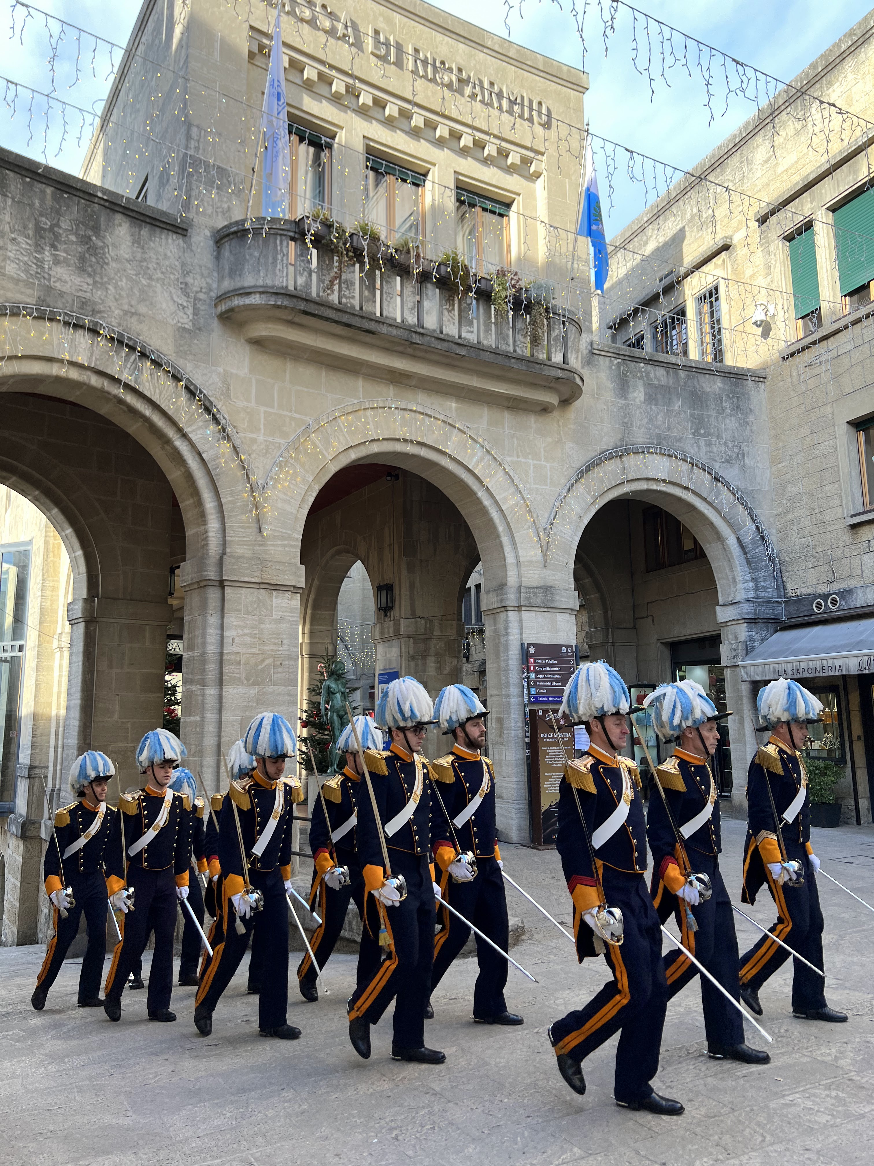 The next thing we walked around town, stopped at Basilica di San Marino. We were lucky enough to experience a parade of the Sammarinese military forces.
