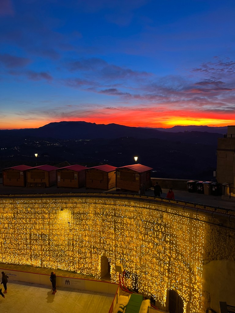 In the light of December festivities, San Marino was lovely decorated. My mom and I even went ice skating – probably the best ambiance I had when ice skating.