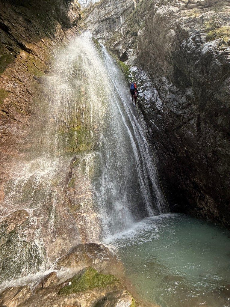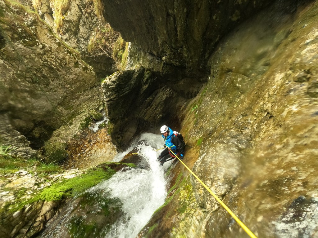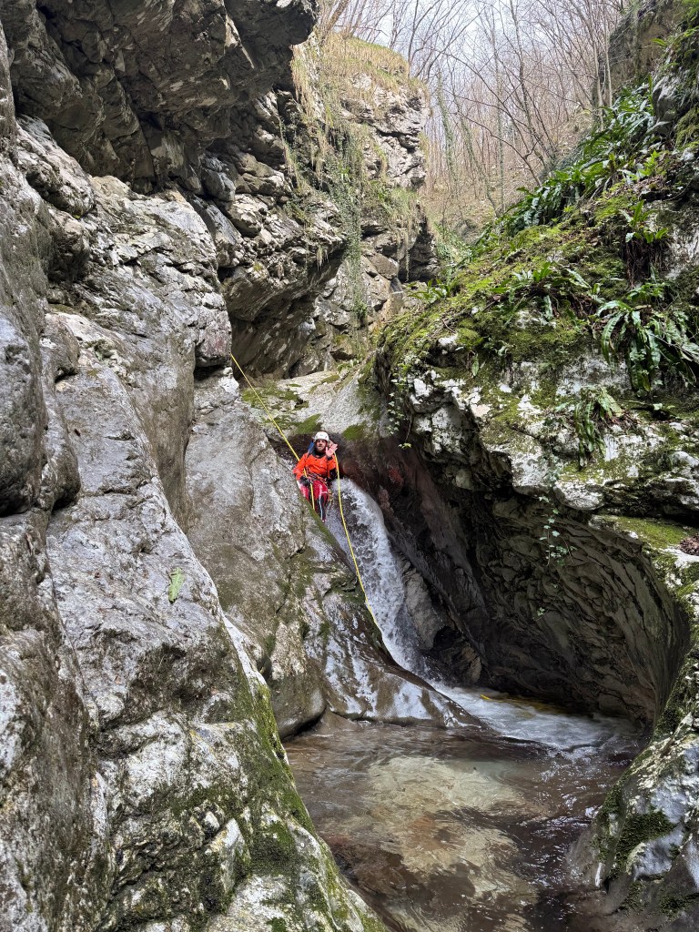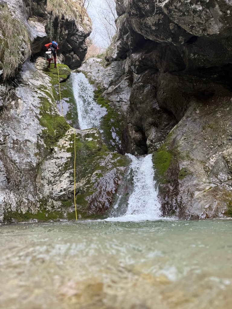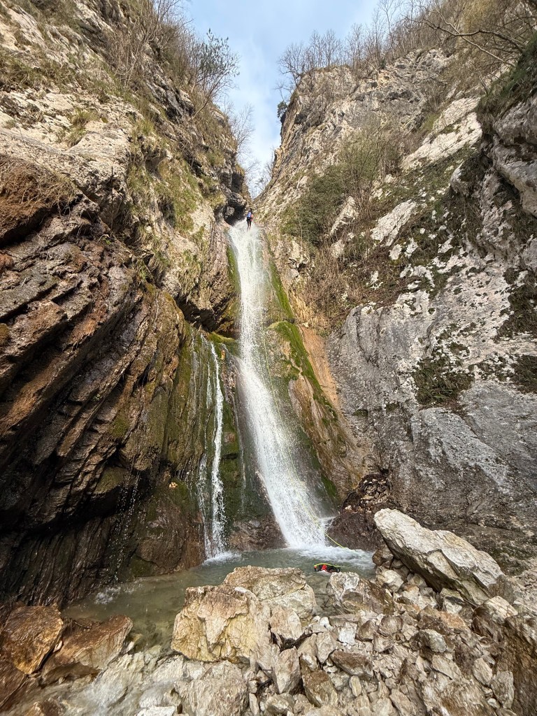 Rio Pissanda (V4A2III) is 4.5 hour canyon (car to car) in Italy. It is a nice, continuing canyon. Meaning, not much walking in between, but rappel after rappel. The highest rappels are 25 m, 35 m and 40 m. It is quite slippery and the water is not the cleanest.