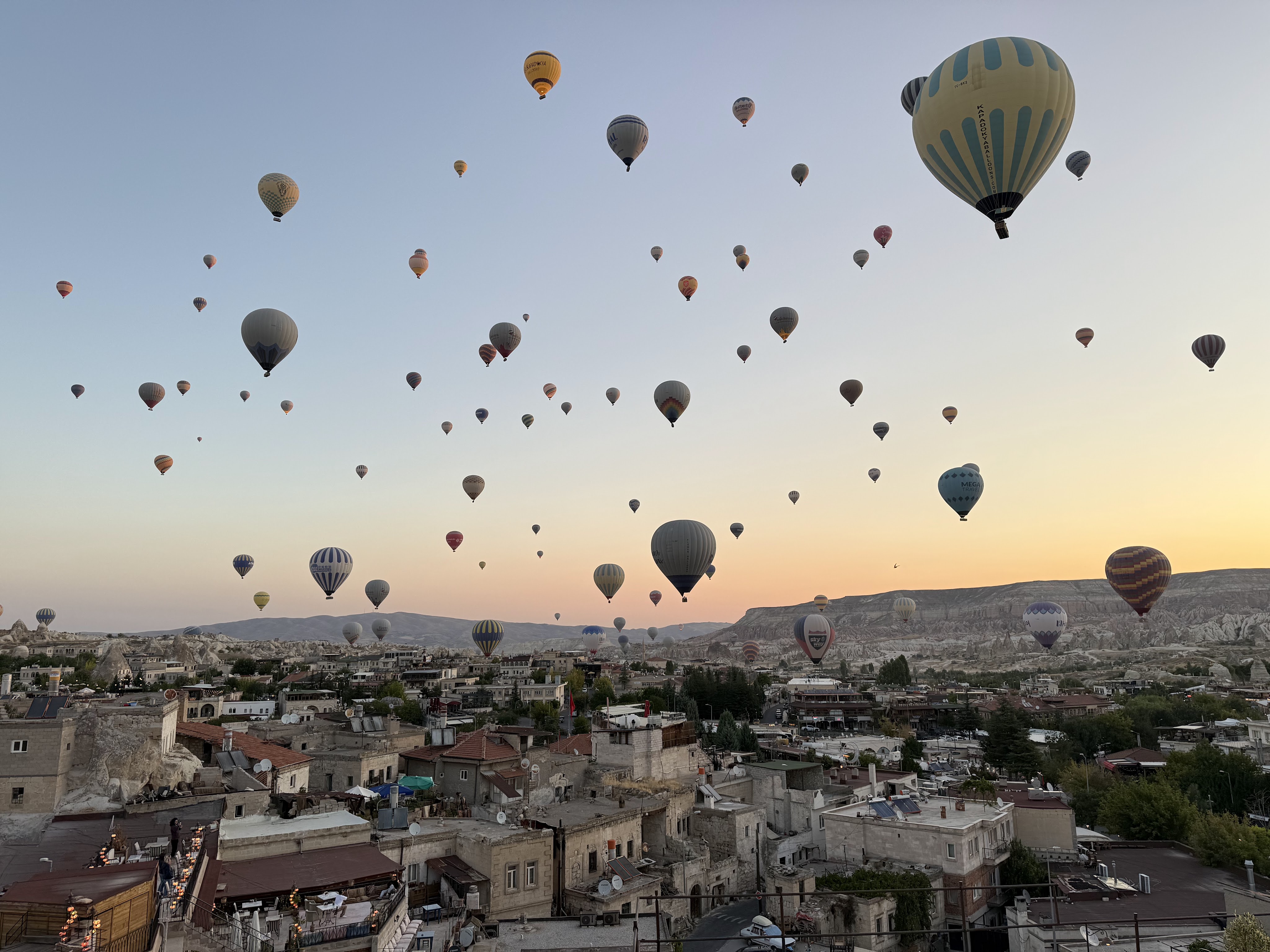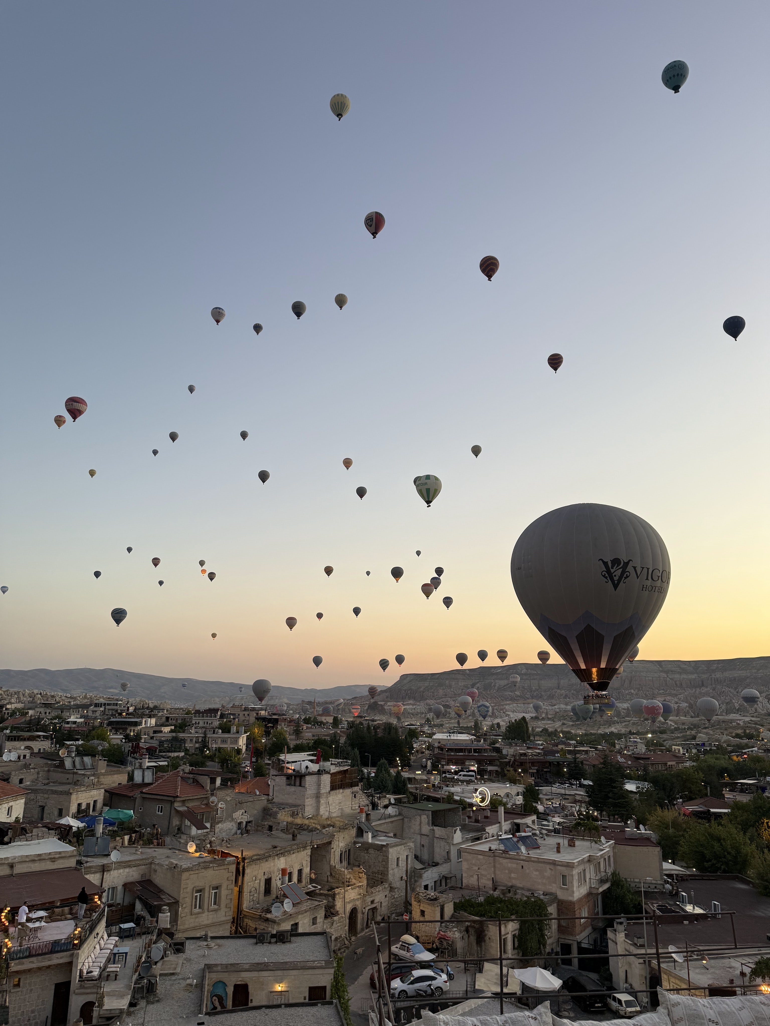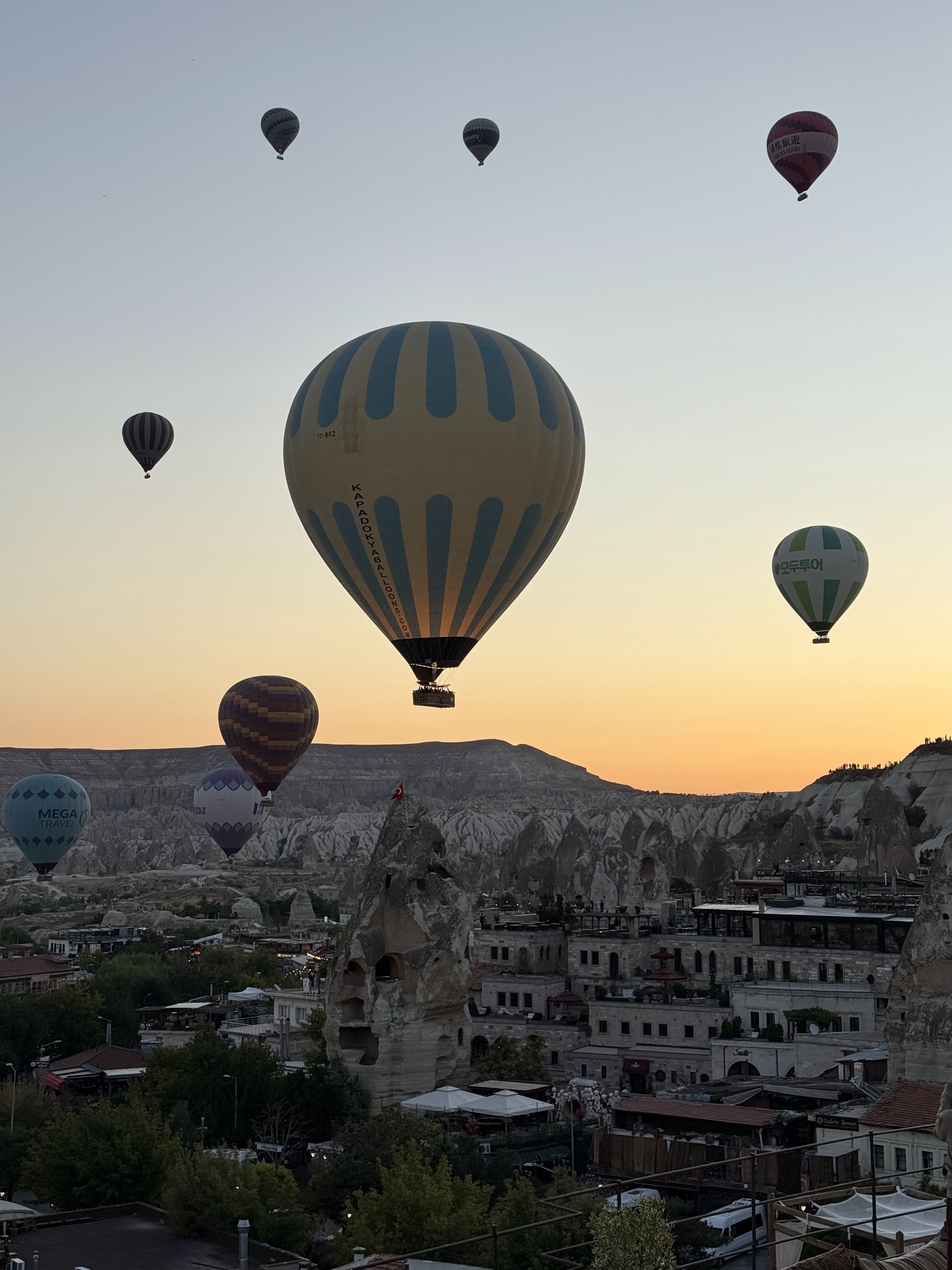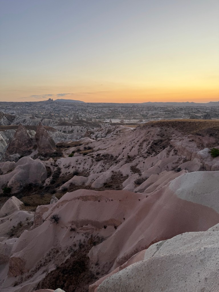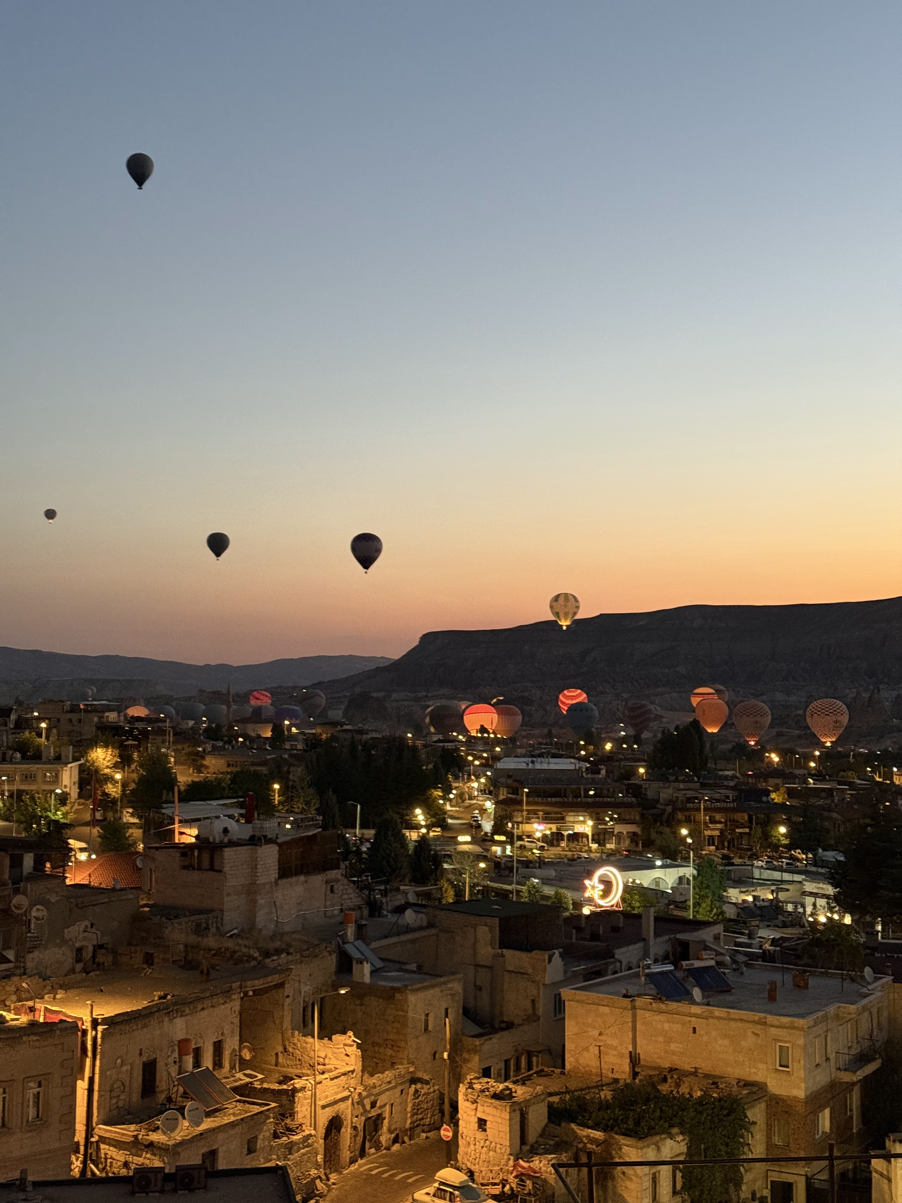 My mother’s wish was to see Cappadocia. After 5 years or so her wish has finally come true. This was our trip. I was very happy to see it too. The formations there are out of this world. We stayed in a hotel in the center of Göreme. Our first sunrise there was magical.