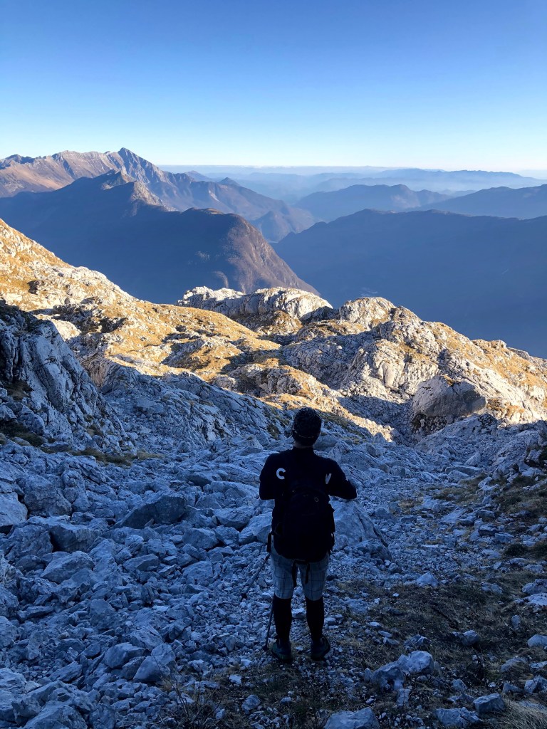 Then we were on the Italian side, making our way to the Slovenian side on a rocky, unmarked terrain. It took quite a lot of focus. We were happy to make it Veliki Babanski skedenj.