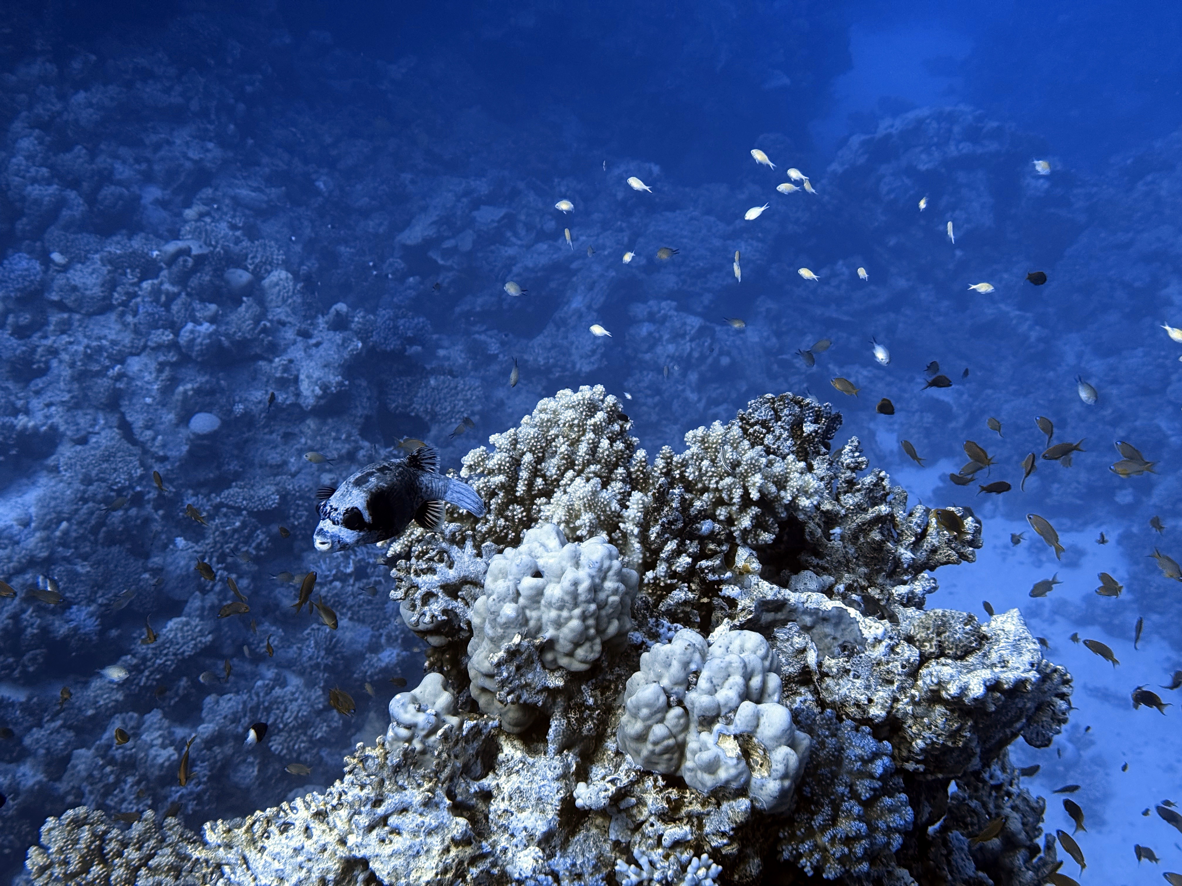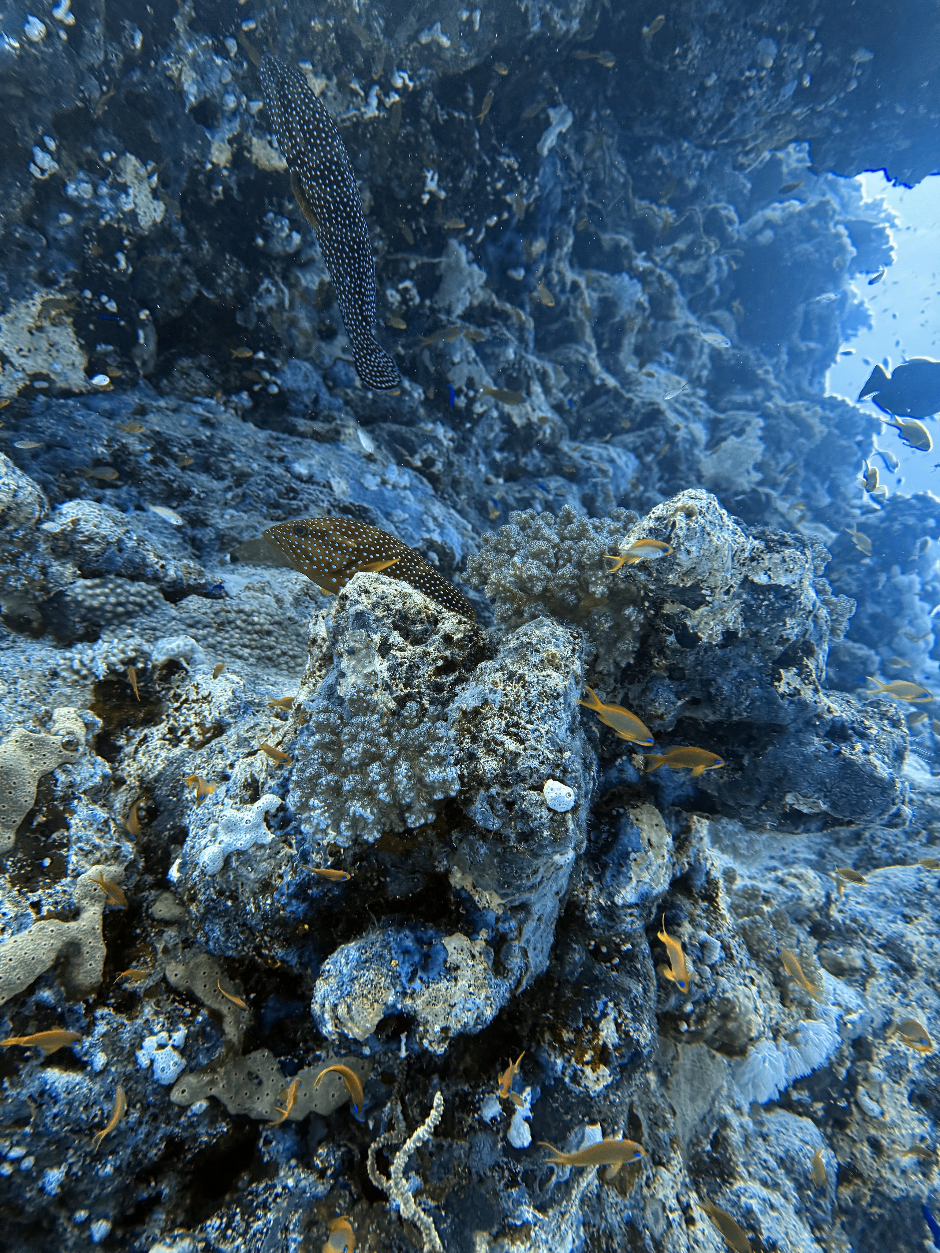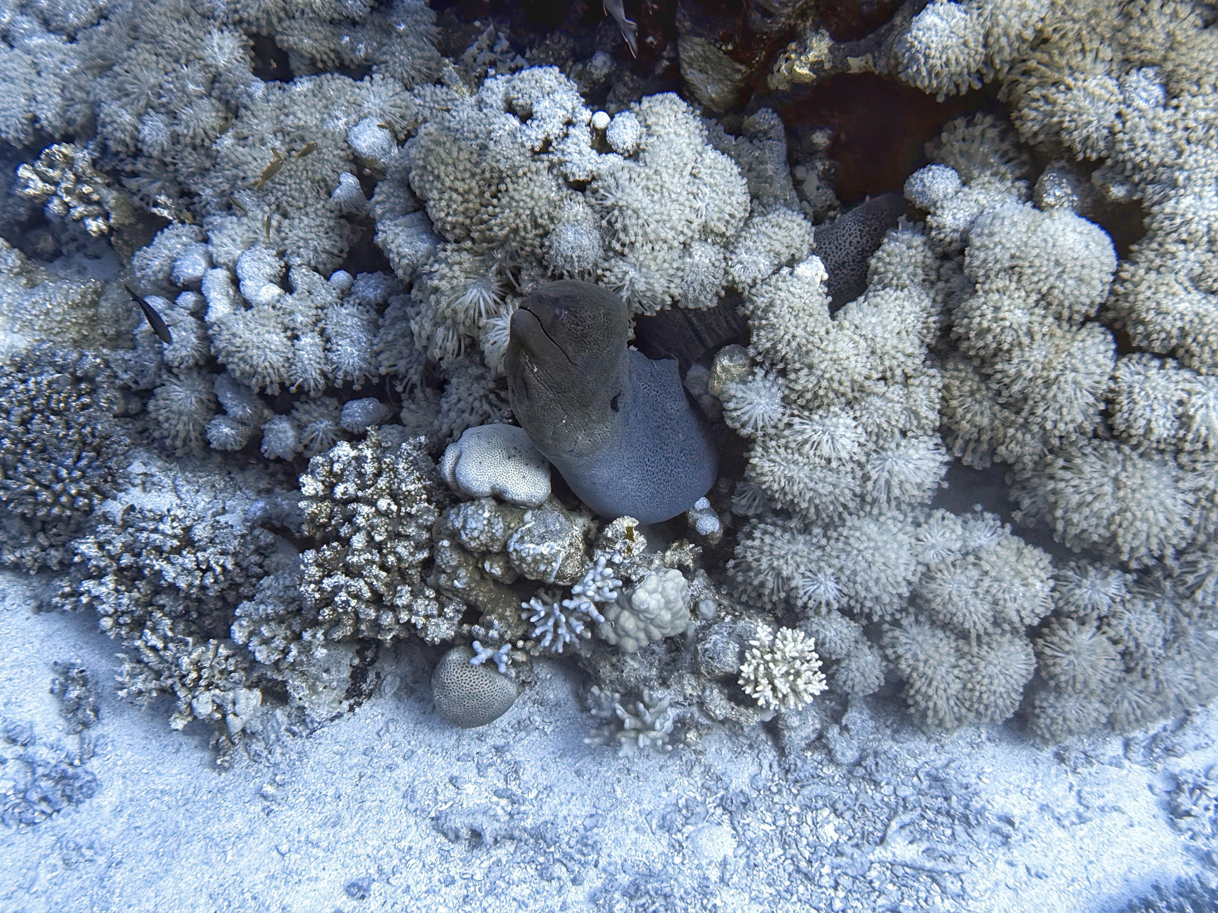 We have seen many trumpet fish, lobsters, white-eyed morays, eagle rays, filefish, lots of plankton, I have never seen before. Also schools of barracudas, leopard eels, giant pufferfish, huge groupers, garden eels, turtles and even a torpedo ray! And a fangtoothed moray, which was also the first time I ever saw it.